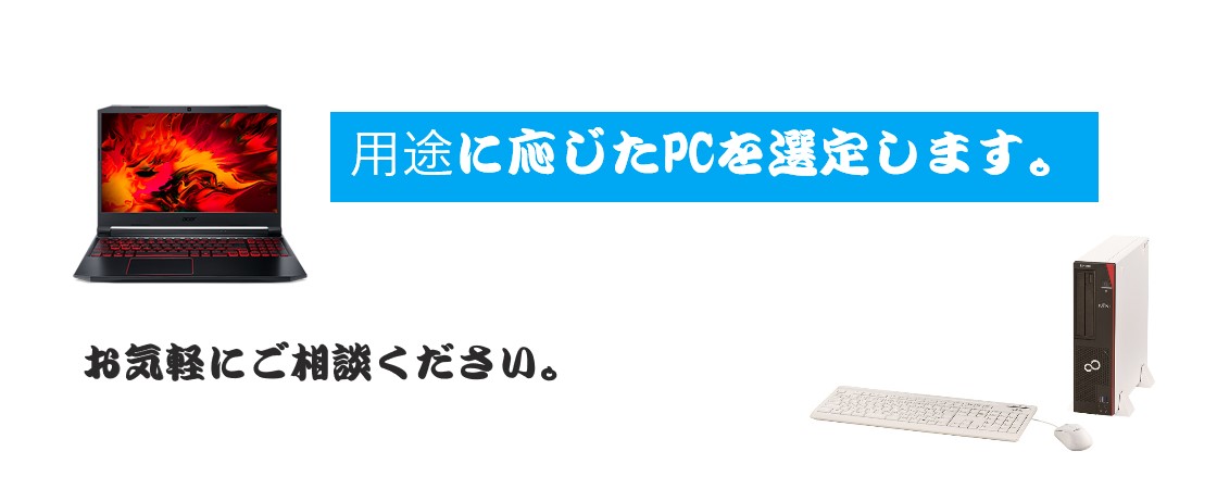 事務作業用パソコンからクリエイター向けパソコンまで、用途に応じた様々なパソコンをご準備いたします!